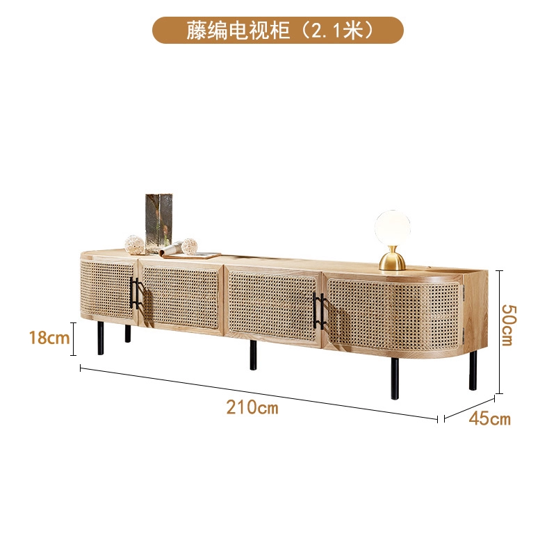 Creative ash wood TV cabinet Nordic rattan storage cabinet small apartment wall cabinet modern minimalist B&B solid wood furniture