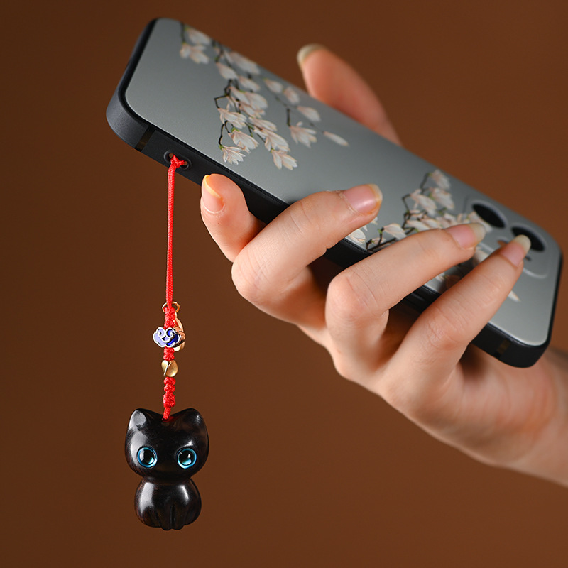 Creative Cartoon Cute Lucky Cat Sandalwood Men’s and Women’s National Fashion Antique Bag Pendant Mobile Phone Chain Car Key Pendant