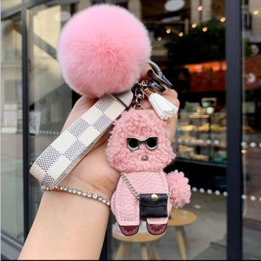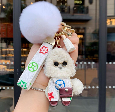 | nameOriginal | Creative cartoon plush teddy dog bag fur ball pendant car couple keychain bag pendant leather keychain |