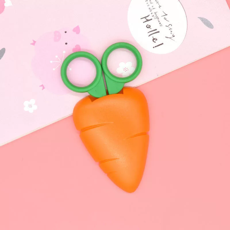 | nameOriginal | Creative cute carrot safe children's handmade paper-cut round head with protective cover student scissors household scissors |