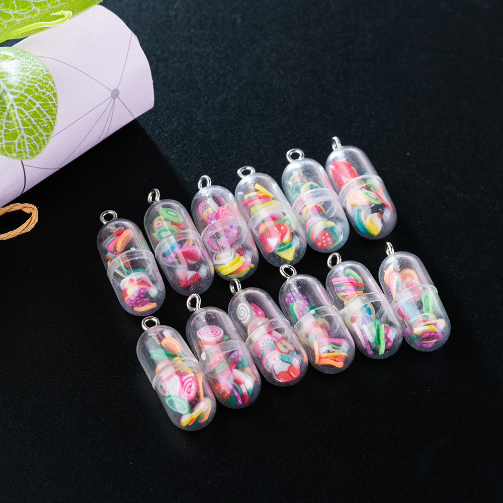 | nameOriginal | Creative Cute Pill Capsule Pendant Accessories Keychain Earrings Necklace Pendant Fruit Little Man Capsule |