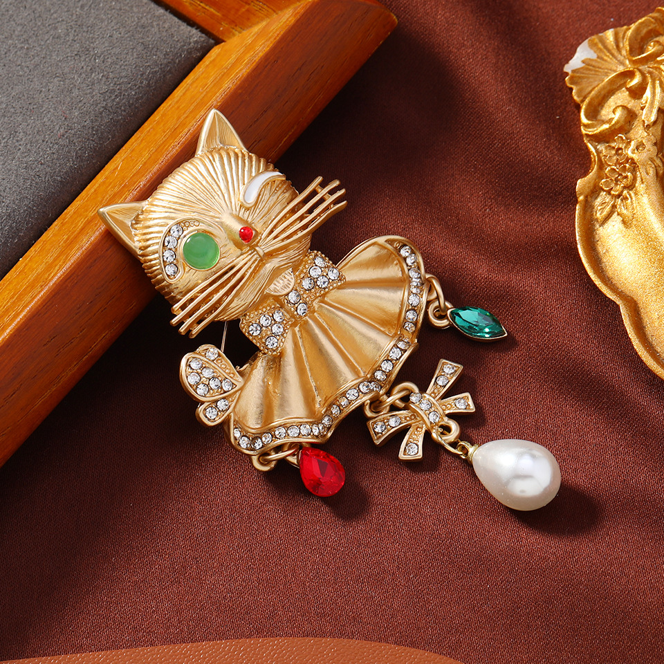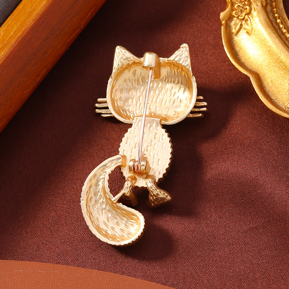 Creative dumb gold cartoon big tail cat brooch cute summer cardigan shawl anti-light animal pin accessories