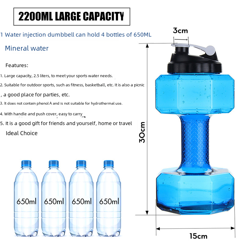Creative dumbbell fitness kettle water filling dumbbell water Cup portable water injection dumbbell plastic pot arm muscle training fitness equipment
