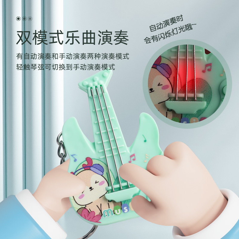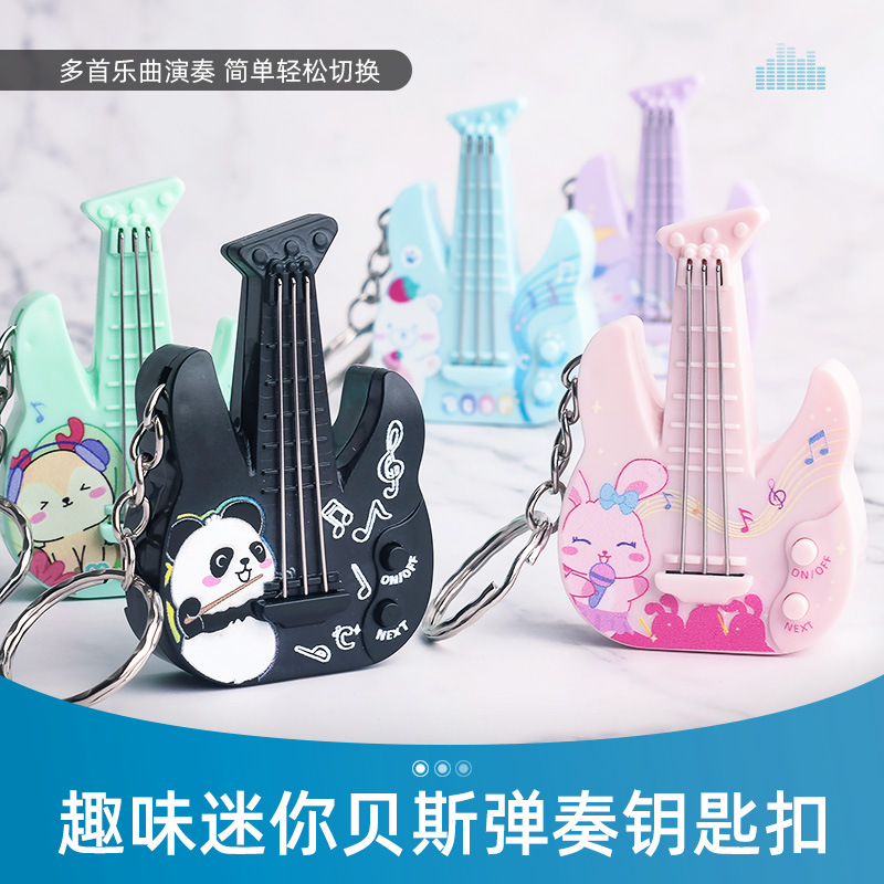 | nameOriginal | Creative fun guitar keychain children mini cartoon with light music bass e-book bag pendant toy |