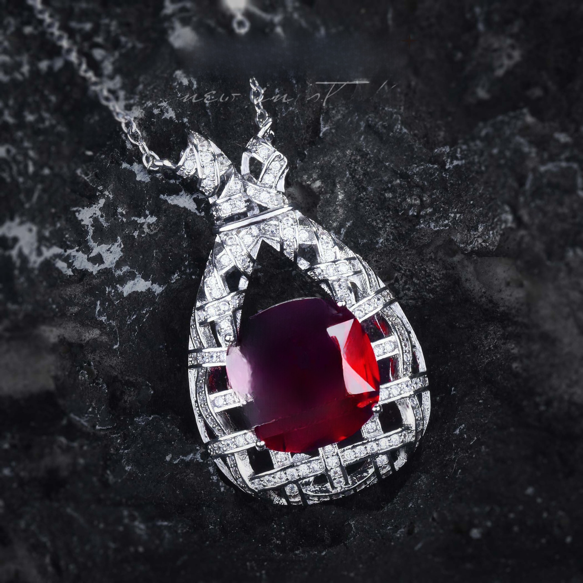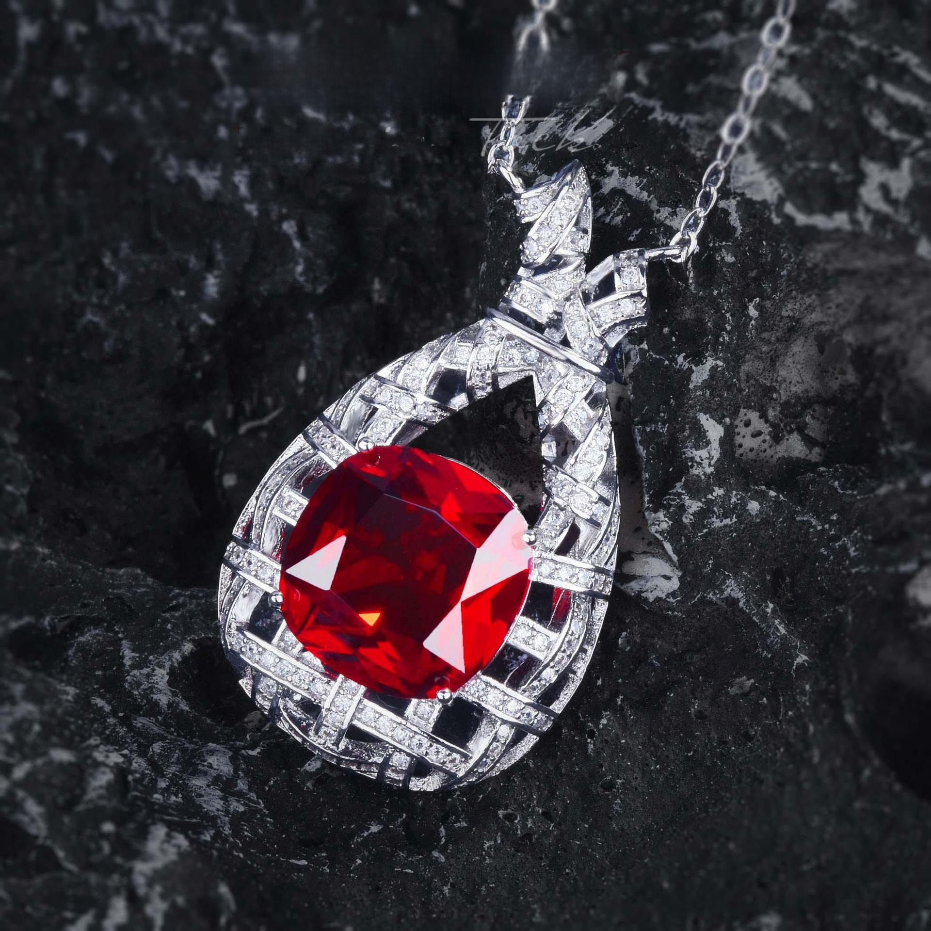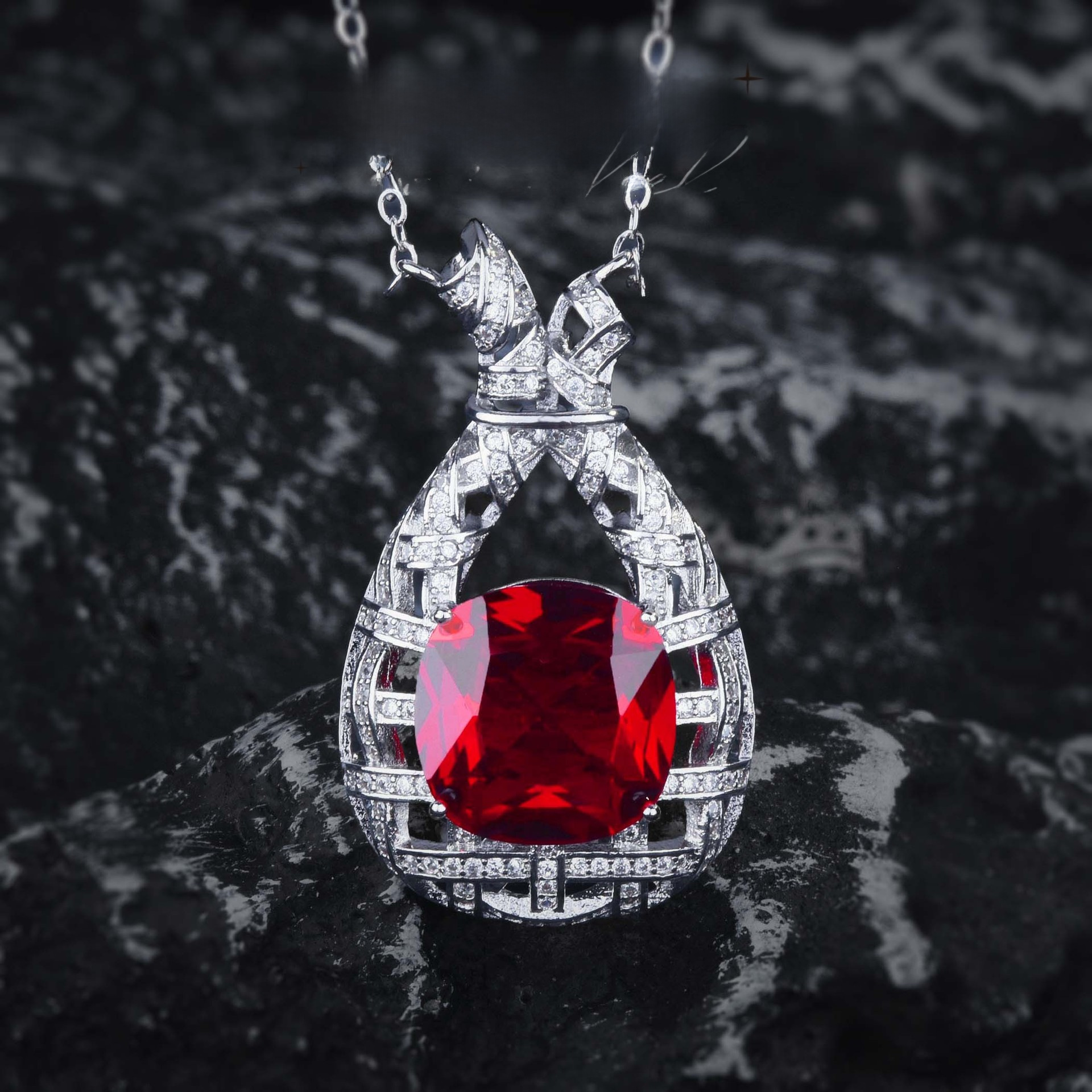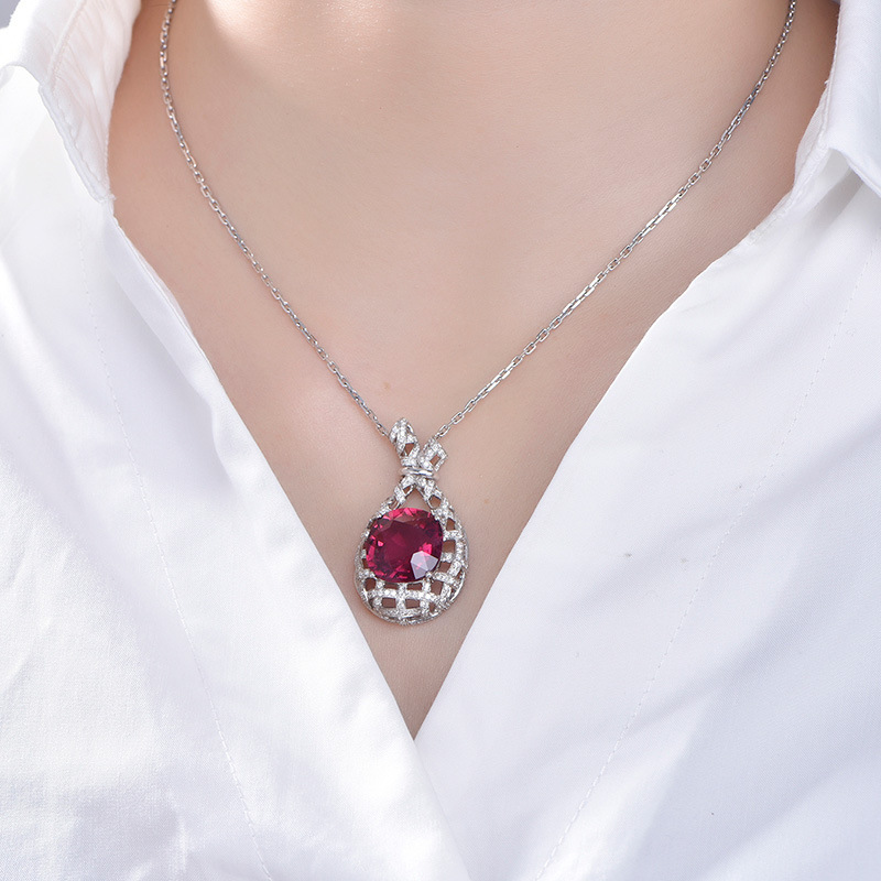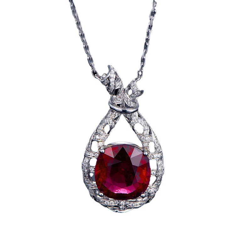 | nameOriginal | Creative gourd design 12 karat imitation natural pigeon red pendant female red tourmaline pt950 inlaid zircon necklace |