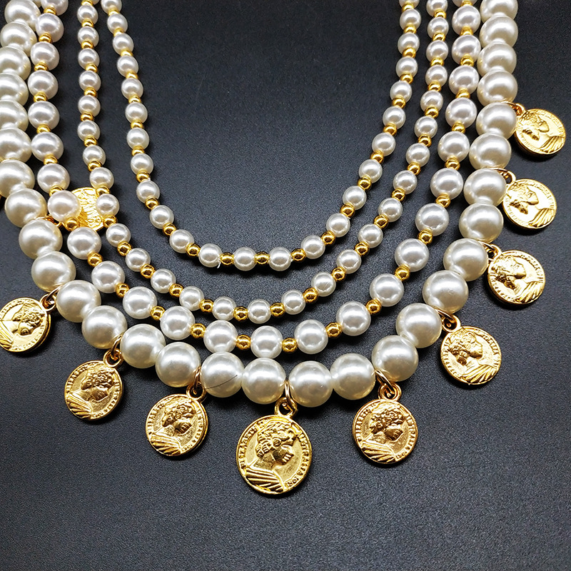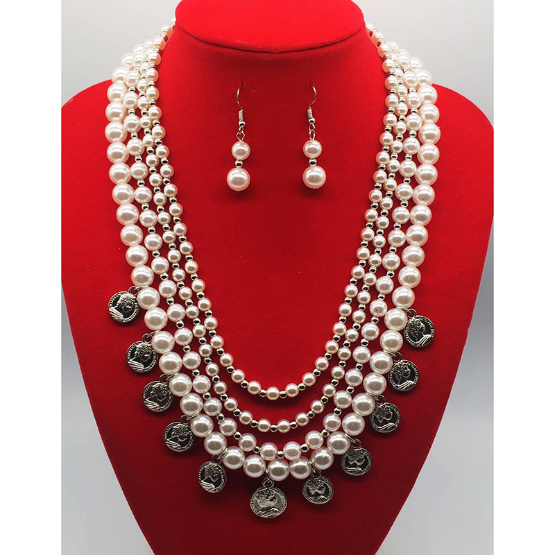| nameOriginal | Creative hot multi-layer pearl beaded coin tag necklace pearl earrings suit cross-border Accessories Wholesale |