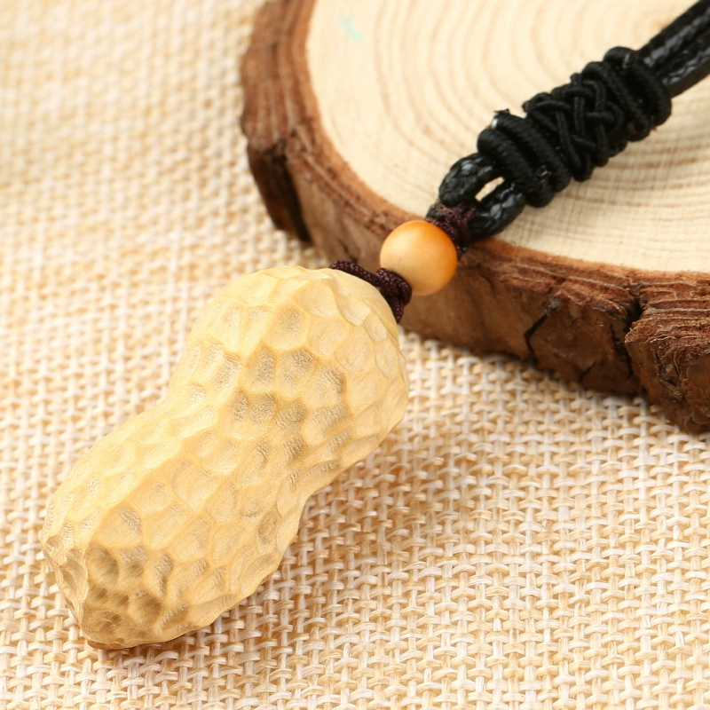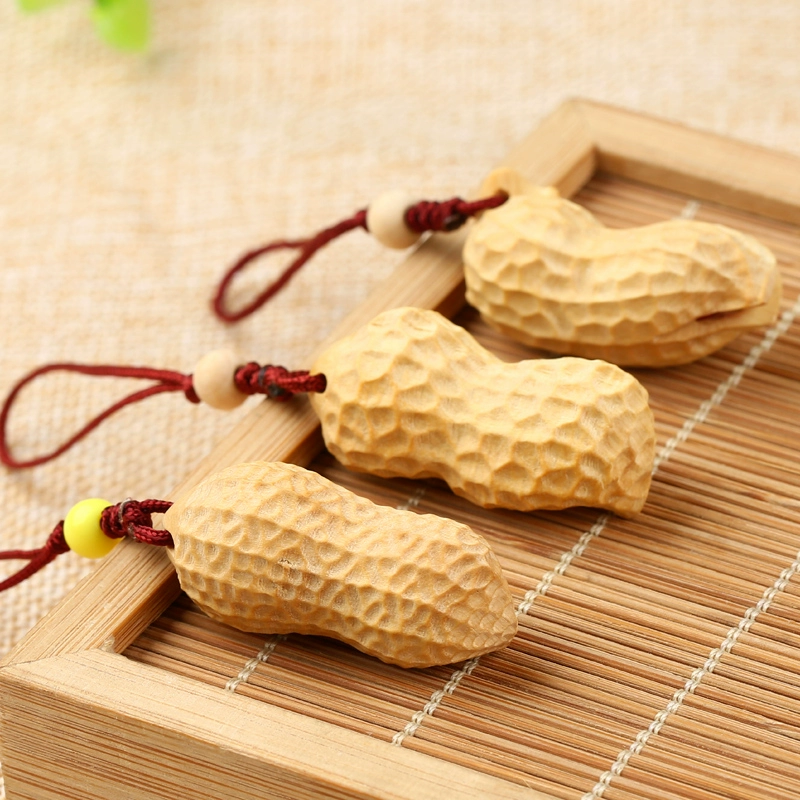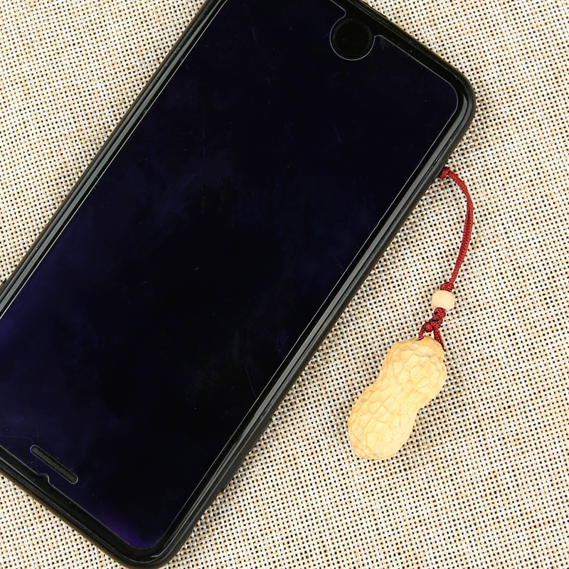 Creative mobile phone chain lanyard short U disk car key bag pendant cute boxwood carved peanut pendant