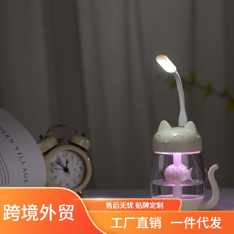 | nameOriginal | Creative multifunctional kitten mini humidifier colorful night light USB fan book light three-in-one humidifier |