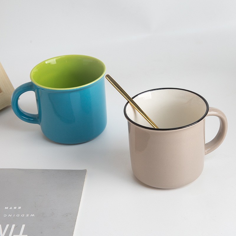 | nameOriginal | Creative new bone china imitation enamel cup printing logo office couple coffee cup ceramic mug wholesale |