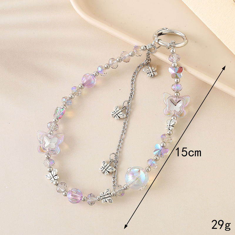 Creative New Crystal Jewel Beaded Pendant Ins All-match Alloy Butterfly Hanging Double Chain Mobile Phone Lanyard for Women