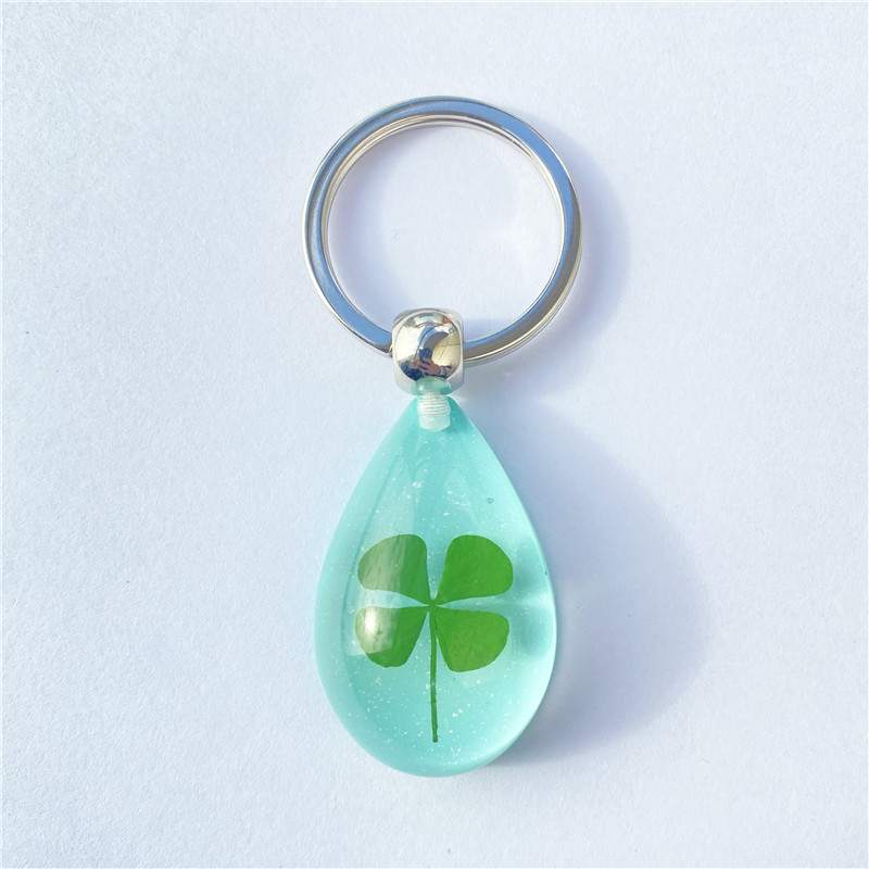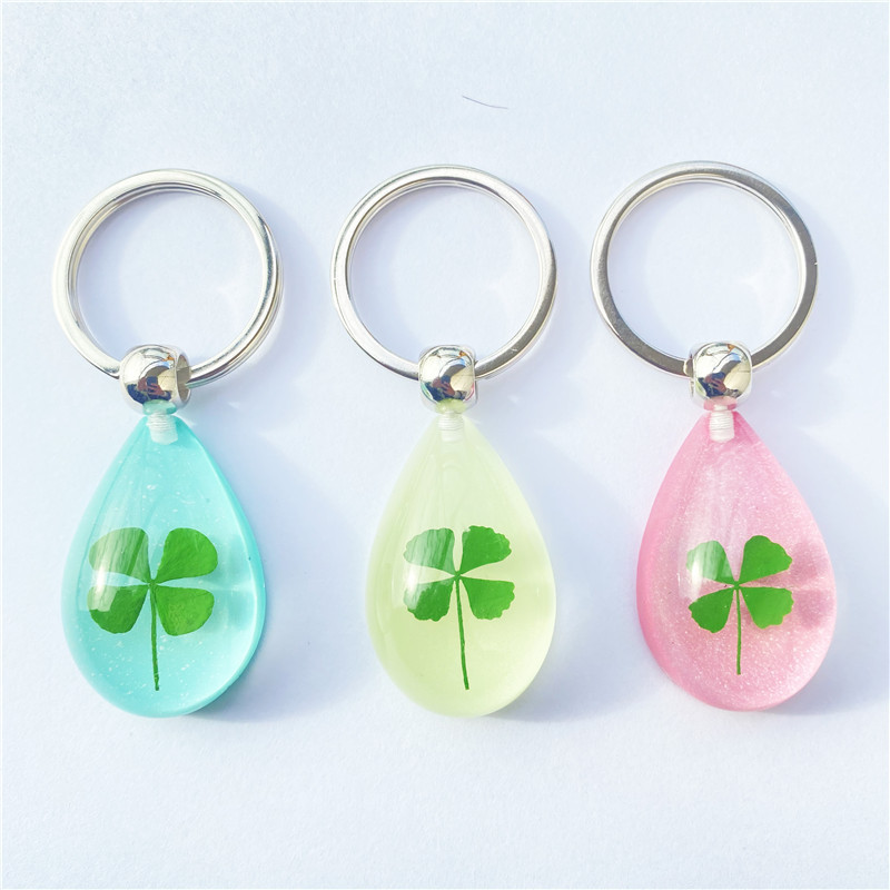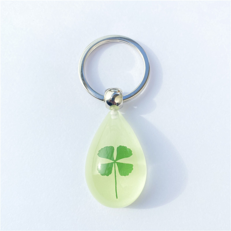 Creative new four-leaf clover luminous key chain Lucky grass DIY jewelry pendant can make company logo