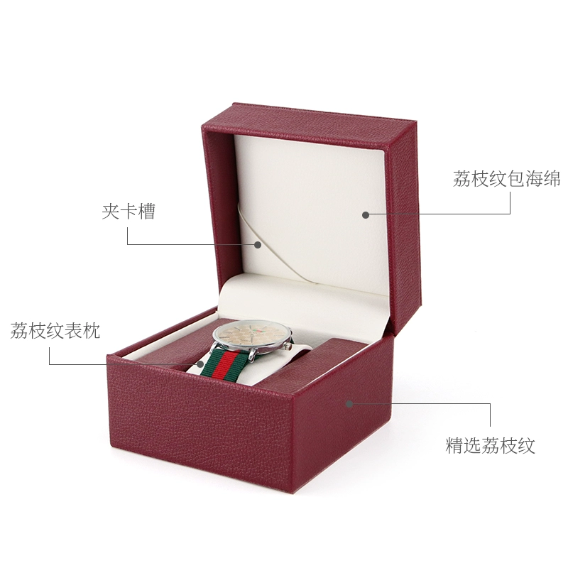 | nameOriginal | Creative pebbled watch box pu leather jewelry packaging box stitched watch box flip watch storage display box |