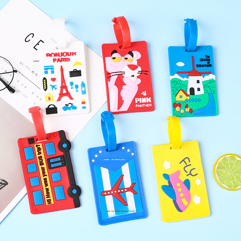 Creative PVC soft rubber luggage tag cute cartoon boarding pass lanyard silicone trolley luggage travel card wholesale
