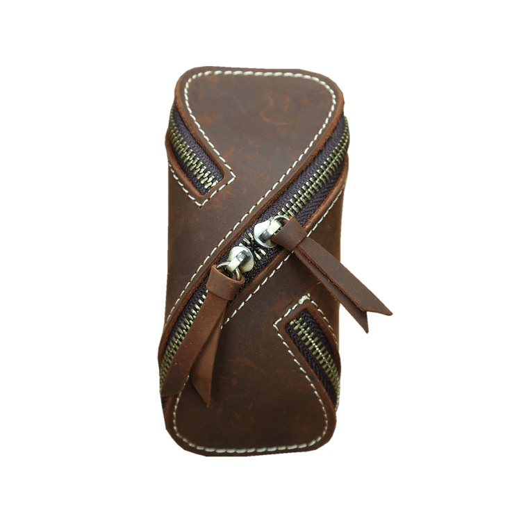 Creative Retro Crazy Horse Leather Key Bag Zipper Key Card Bag Door Car Retro Leather Men's and Women's Key Bag
