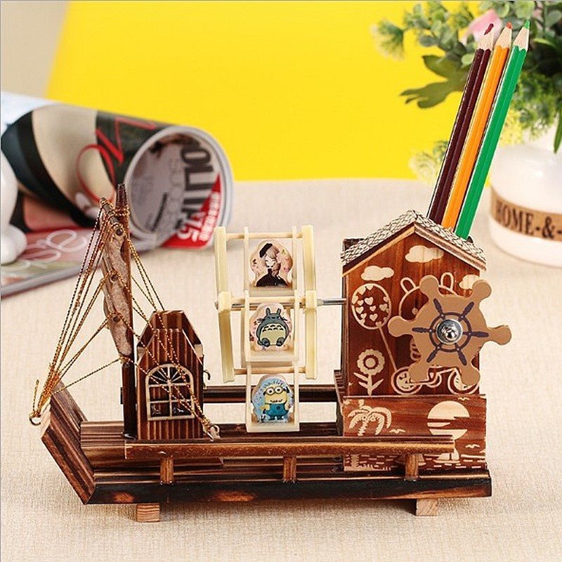 | nameOriginal | Creative rotating windmill wooden sailing pen container music box wind-up music box children's birthday teacher's day gift span |