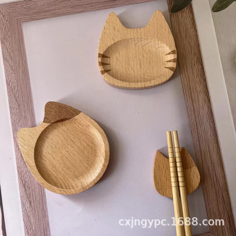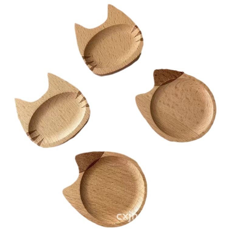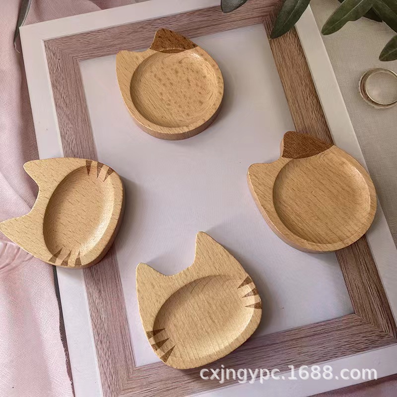 Creative Sequins Beaded Accessories Wooden Storage Plate Dumpling Sauce Dish Cat Style Wooden Dish Wooden Cartoon Sauce Dish