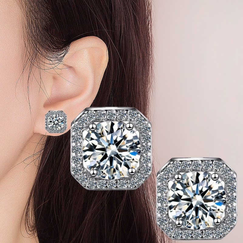 Creative Square bag imitation moissanite ring earrings pendant necklace jewelry suit live hot sale three-piece set accessories