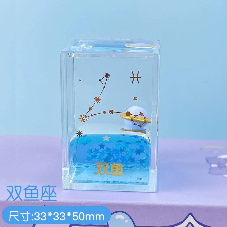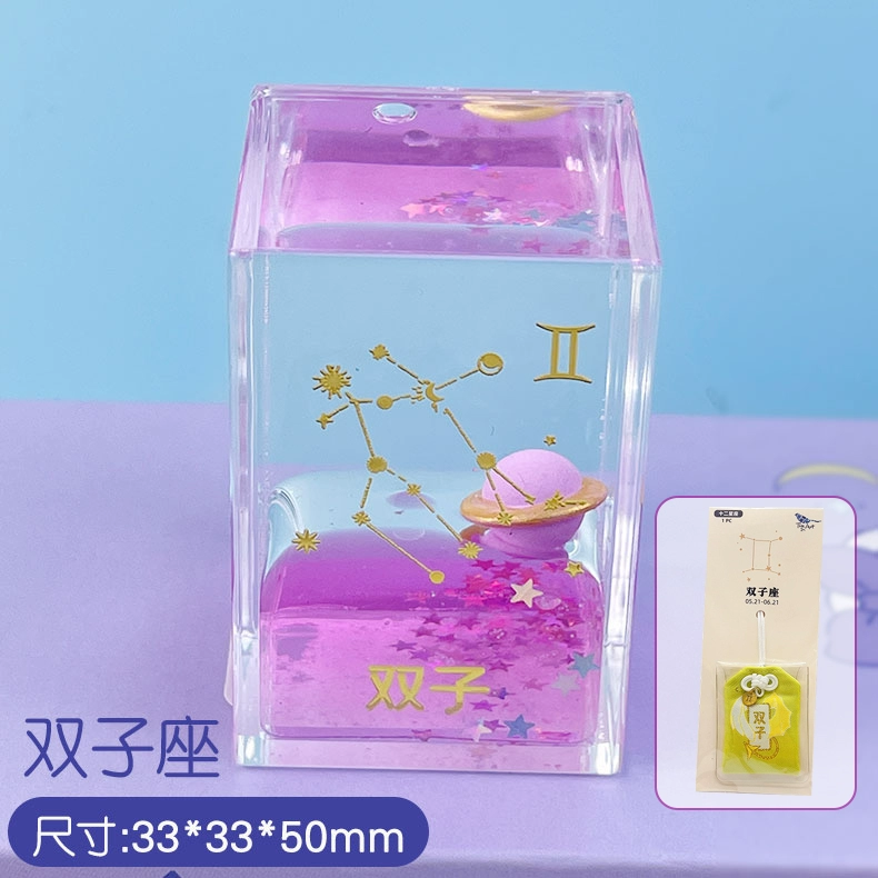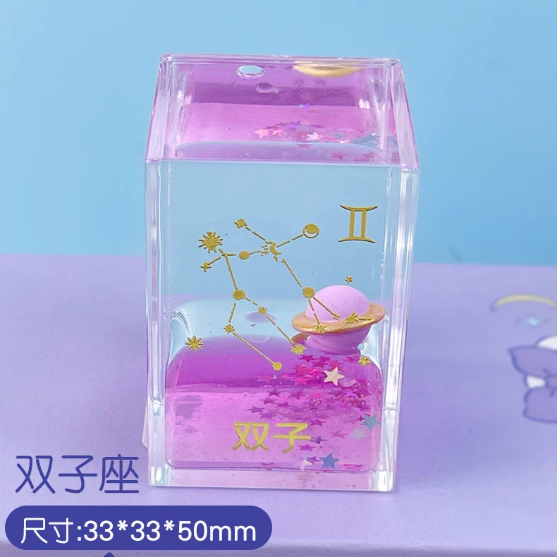 | nameOriginal | Creative twelve constellations oil-filled ornaments office decompression mini quicksand bottle oil leak small toy hourglass birthday gift |