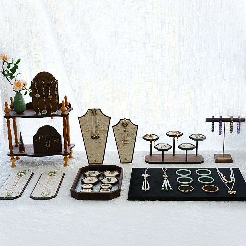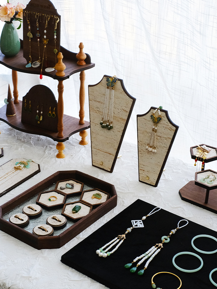 Creative vintage jewelry display stand vertical necklace storage rack wooden multi-layer jewelry display shooting props