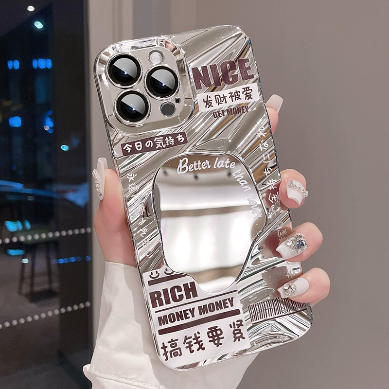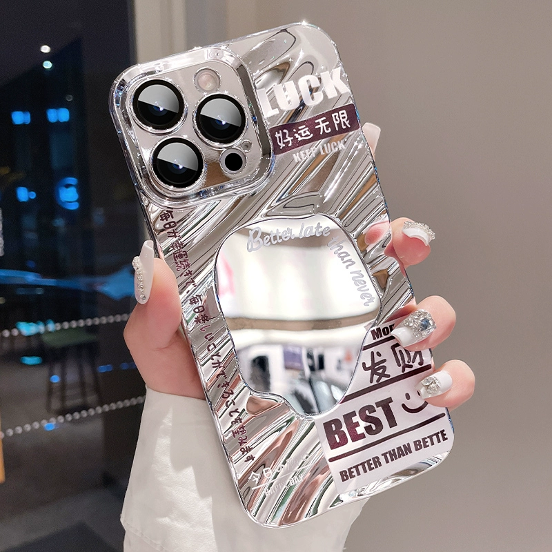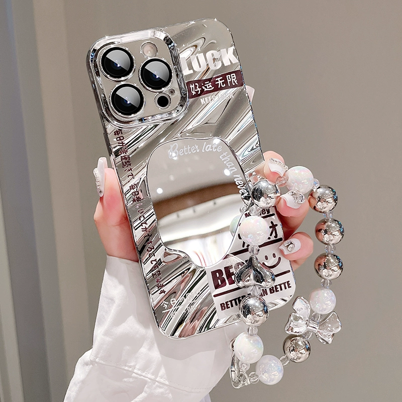 | nameOriginal | Creative wavy pattern silver mirror apple with lanyard |