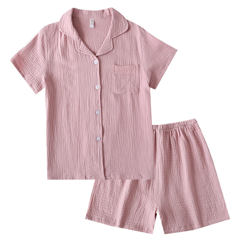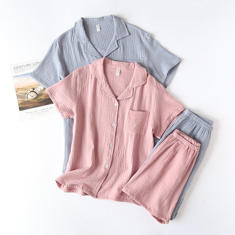 | nameOriginal | Crepe Cotton Short-sleeved Shorts Couple's Pajamas Suit Summer Thin Double-layer Crepe Mesh Men's and Women's Home Clothes |