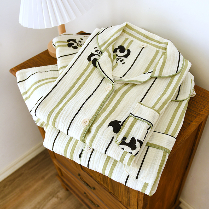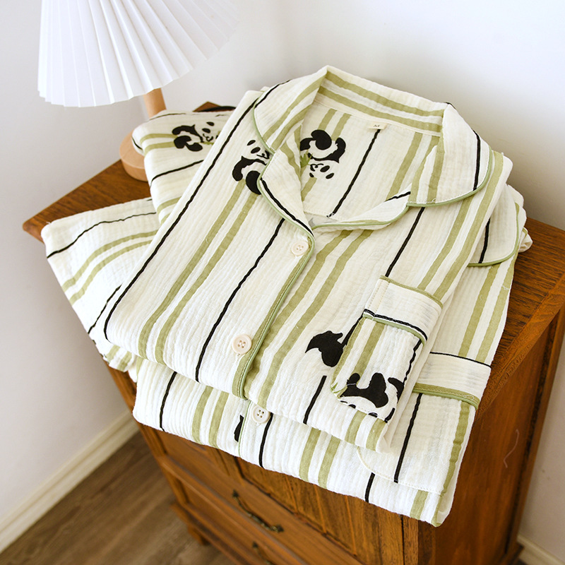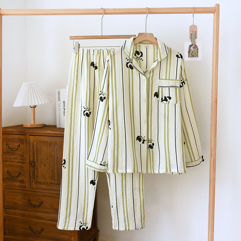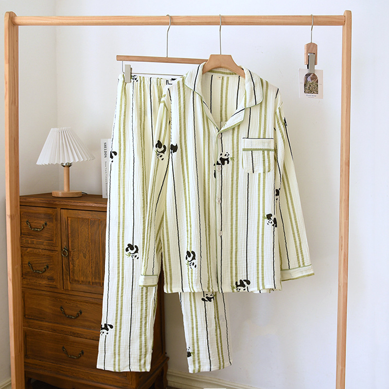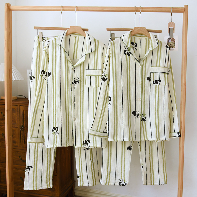 | nameOriginal | Crepe long-sleeved trousers couple's home wear men's and women's spring and autumn pajamas cotton suit |