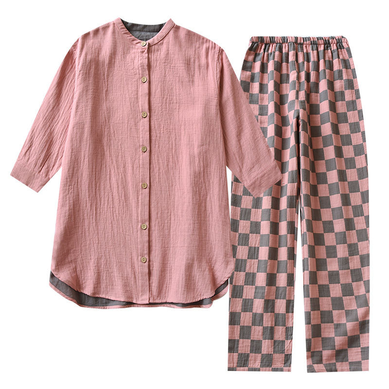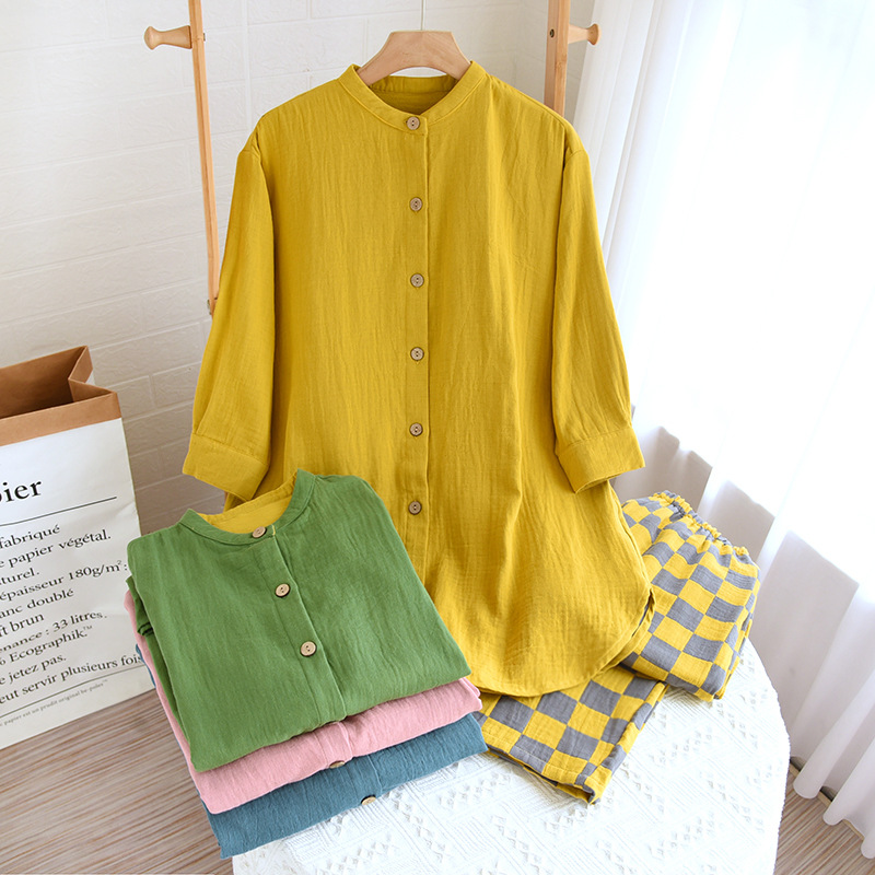 | nameOriginal | Crepe Pajamas Set Women's Summer Thin All Cotton Crepe Home Wear Breathable Comfortable Home Suit Trousers |