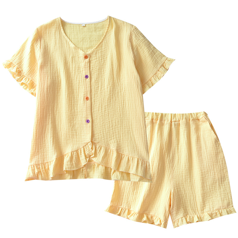 | nameOriginal | Crepe women's new lace short-sleeved shorts multi-color pajamas suit spring and summer V-neck casual loose home wear |