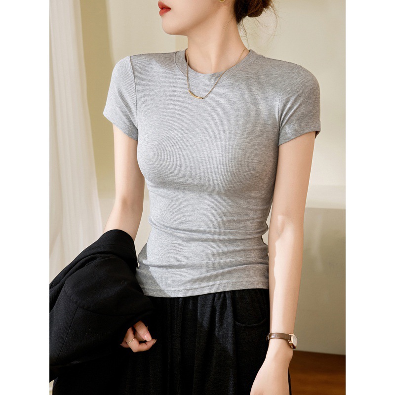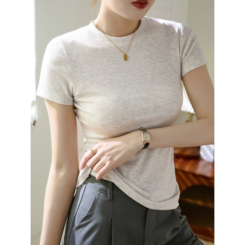 | nameOriginal | Crewneck Base Shirt Women's Simple Style High Tight Short-sleeved Shirt Summer 2024 New All-match Top Slimming AliExpress |