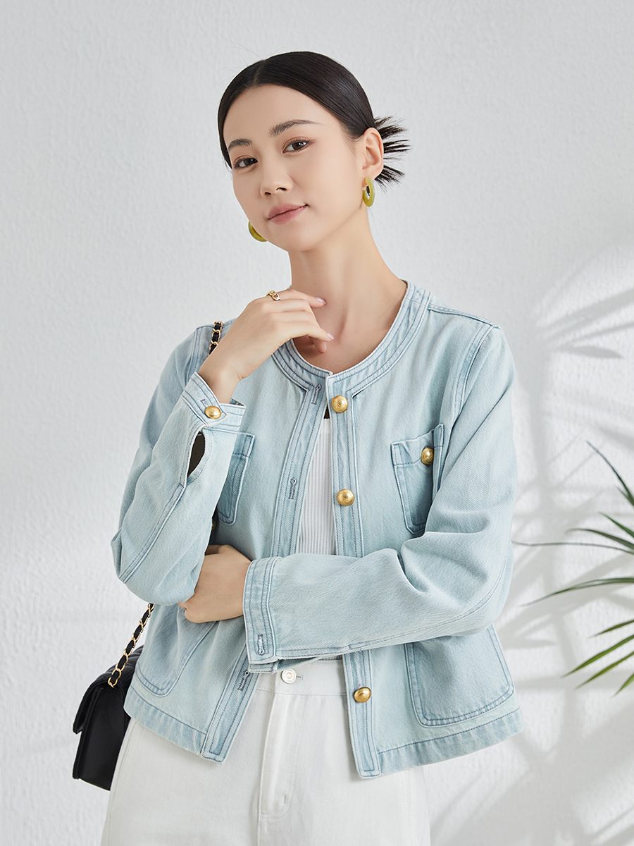 | nameOriginal | Crewneck Denim Coat Women's Spring 2024 New Style Chanel Vintage Design Cardigan Chic Short Top |