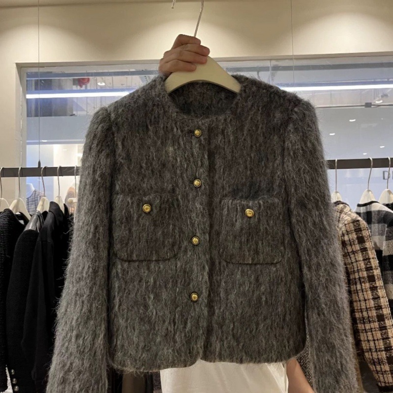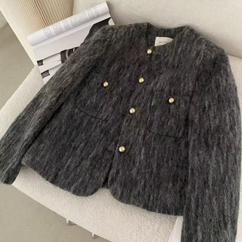 Crewneck high quality Chanel Style Coat Women’s Autumn and Winter New Korean Style Single-breasted All-match Elegant Slim-fit Top