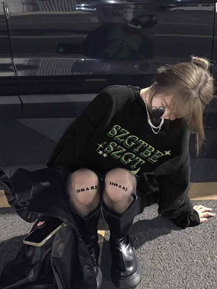 Crewneck Hoodie Women's Korean Style Lazy Style plus size New Spring and Autumn Thin American Style Retro Niche Top