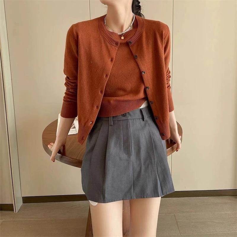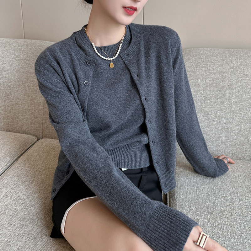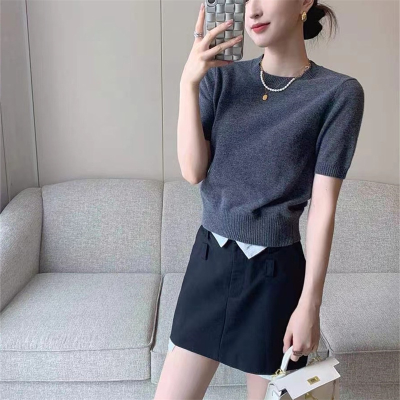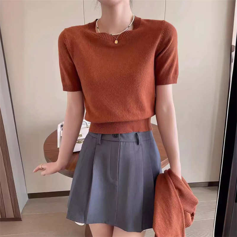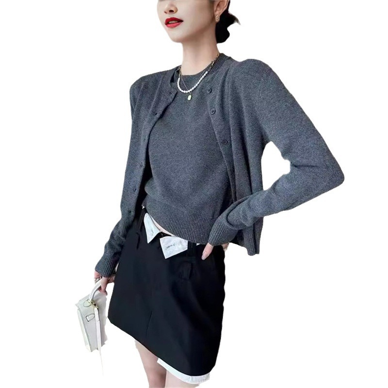 | nameOriginal | Crewneck Simple Style Short-sleeved Knitted Sweater Women's Early Autumn New Elegant Slimming Cardigan Two-piece Knit suit Thin Set |