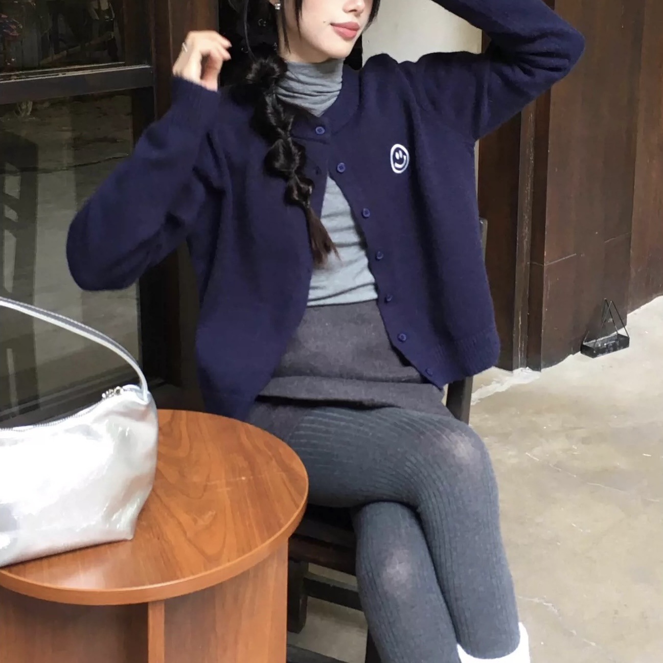 | nameOriginal | Crewneck Smiley Knitted Cardigan Women's 2024 New Korean Style Cute Girl's Short Sweater Coat Spring and Autumn Women's Top |
