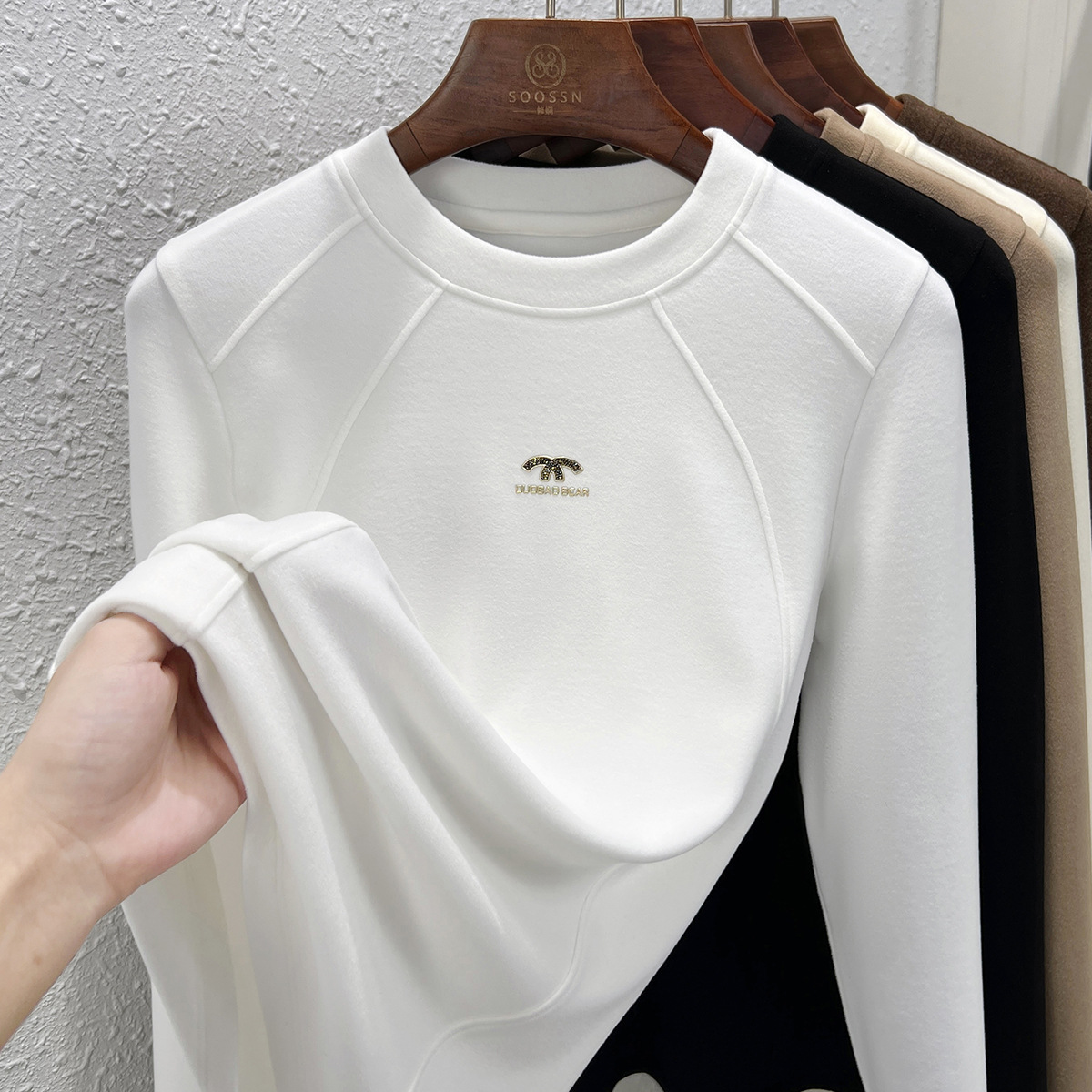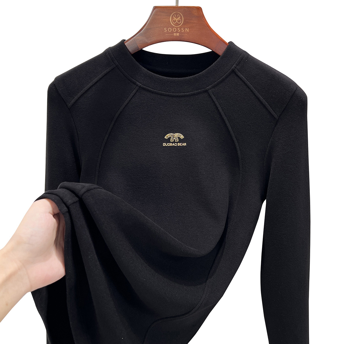 | nameOriginal | Crewneck Velvet Base Shirt Women's Spring and Summer Jacket 2024 New Thickened Double-sided Velvet Warm Black T-shirt Women |