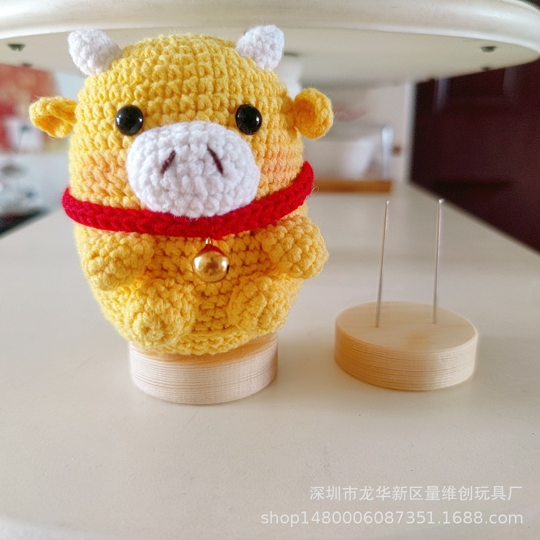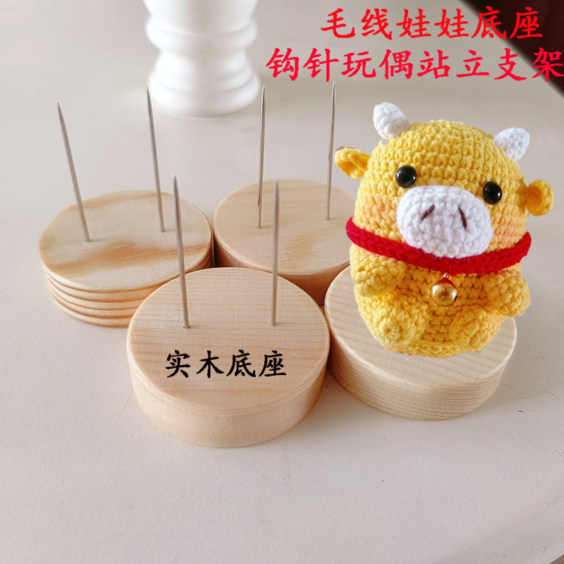 Crochet Doll Holder Small Wool Doll Standing Plush Woven Doll Platform Shelf Invisible Solid Wood Base