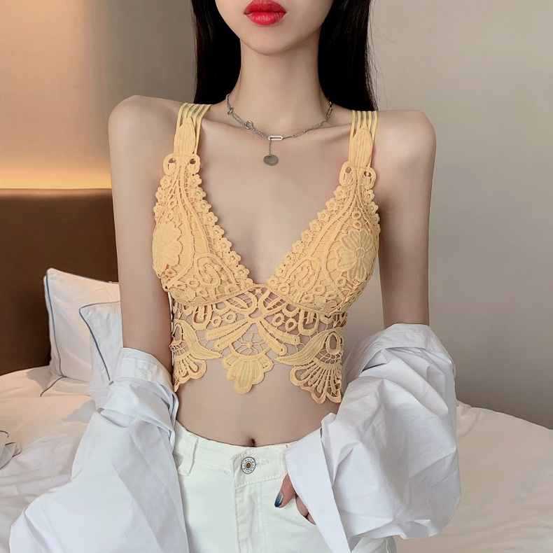 | nameOriginal | Crochet Hollow Lace Beautiful Back Deep V Outer Wear Camisole Women's Chic Milk Inner Wear Pure Desire Base Sexy Underwear |