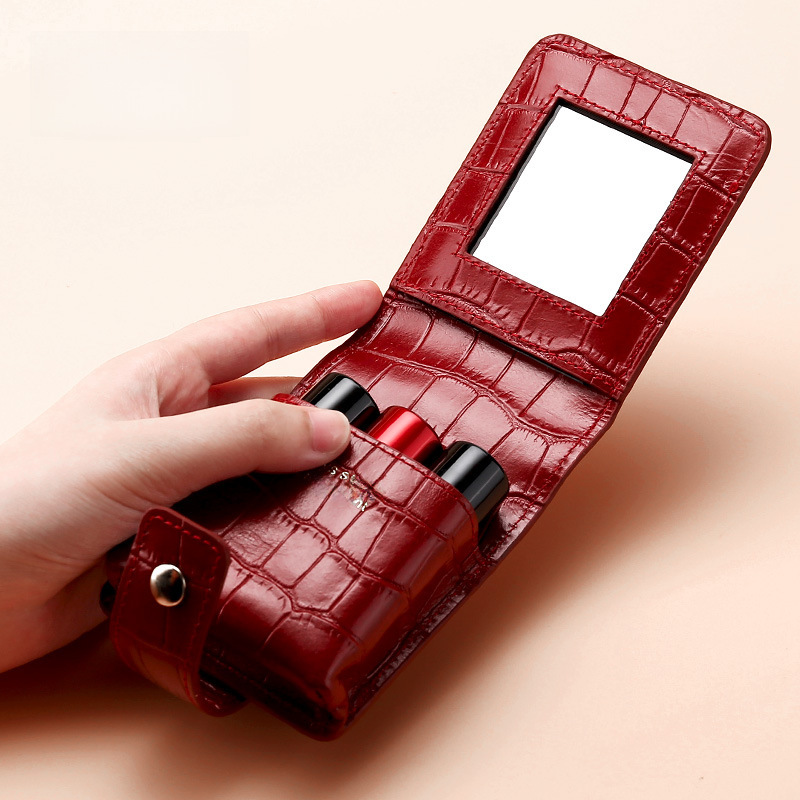 | nameOriginal | Crocodile pattern lipstick storage bag snap strap mirror PU leather mini easy to carry small clutch bag |