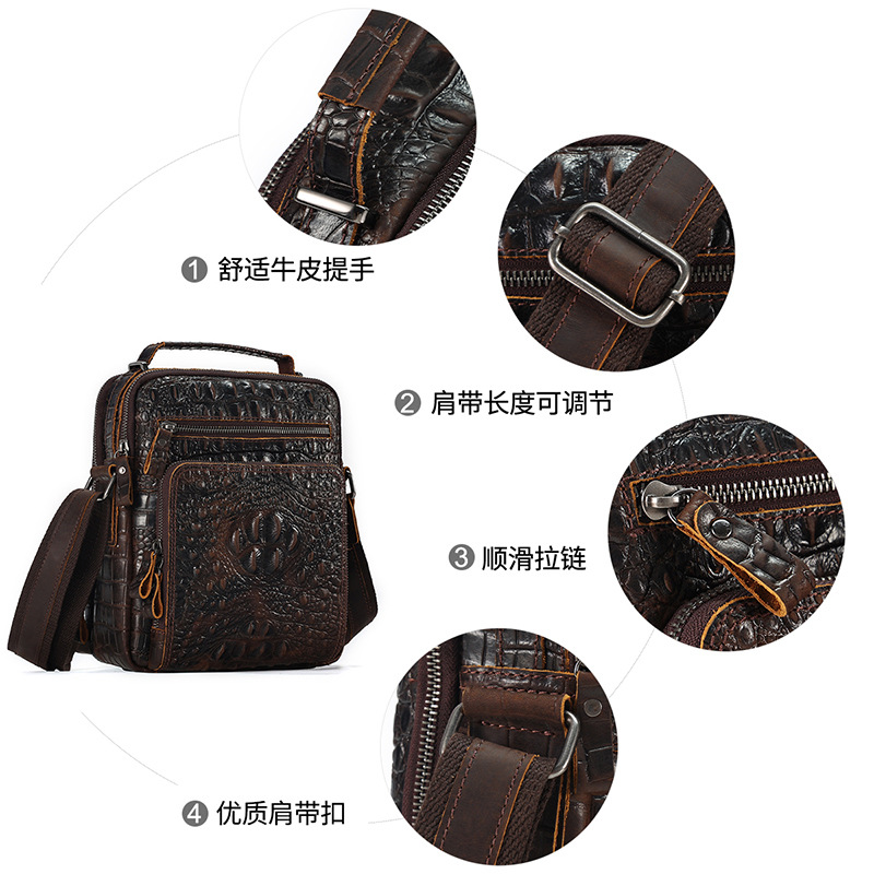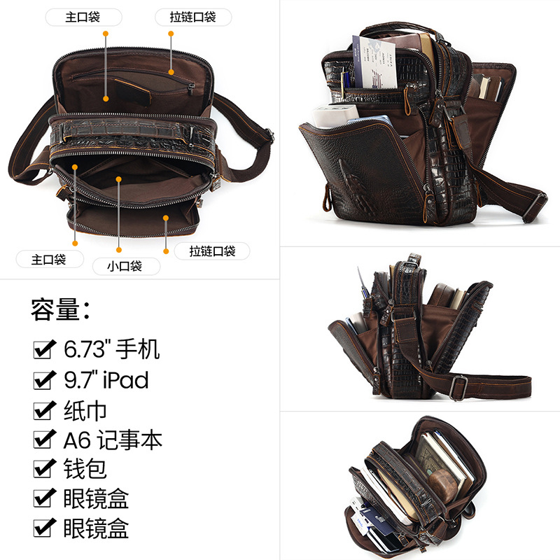 Crocodile Pattern Shoulder Bag Men’s Bag Fashionable Casual Men’s Bag Fashionable Brand Genuine Leather genuine goods Business Portable Crossbody Bag for Men