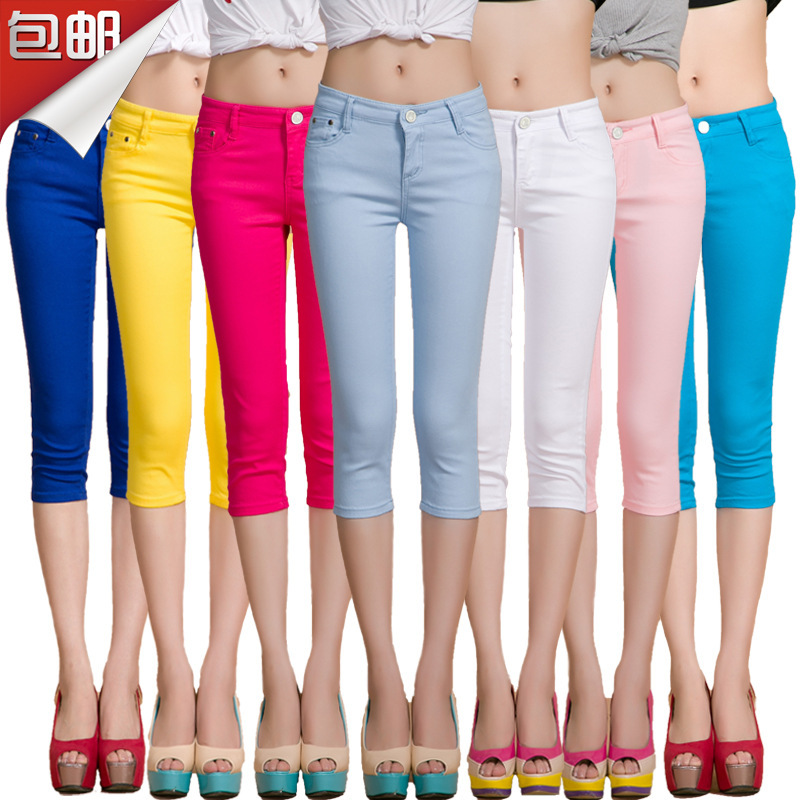 | nameOriginal | Cropped Jeans Women's Summer Candy Colorful Cropped Pants Korean Style Stretch Slim-fit Slimming Mid-length Pants Women's Pencil Pants |