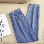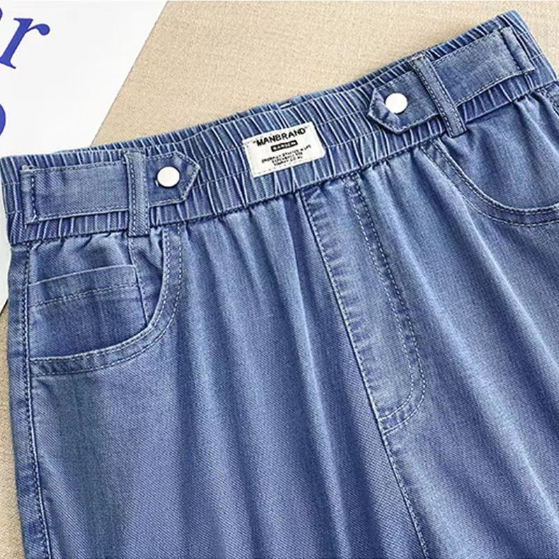 Cropped Tencel Jeans Women’s 2024 Summer New Ice Silk Loose Harem Pants Slimming Straight Thin Pants