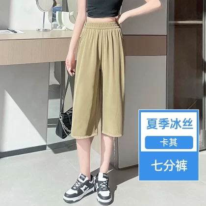 | nameOriginal | Cropped trousers ice silk thin high waist straight casual suit  |