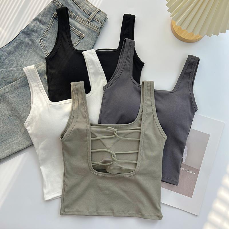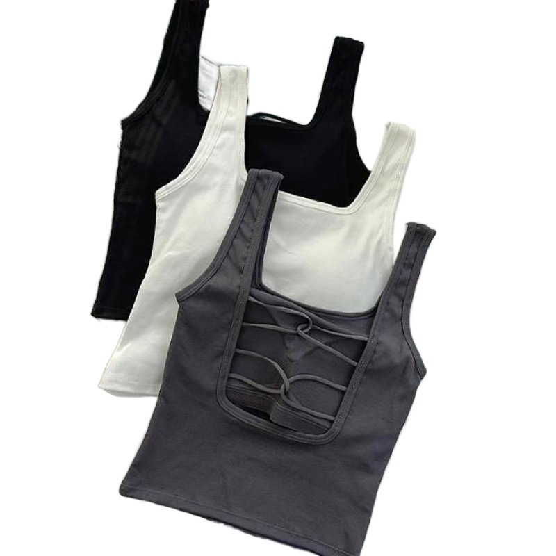 | nameOriginal | Cross Backless Design Beautiful Back Sling with Chest Pad Square Collar Vest Women's Inner Wearing Short Top for Summer |