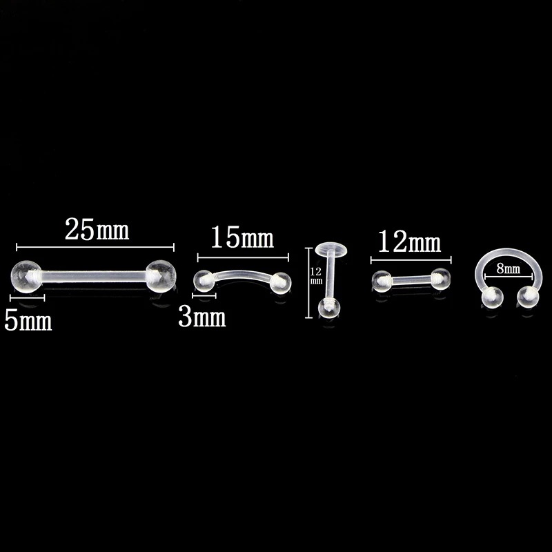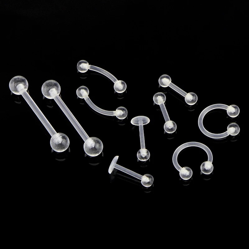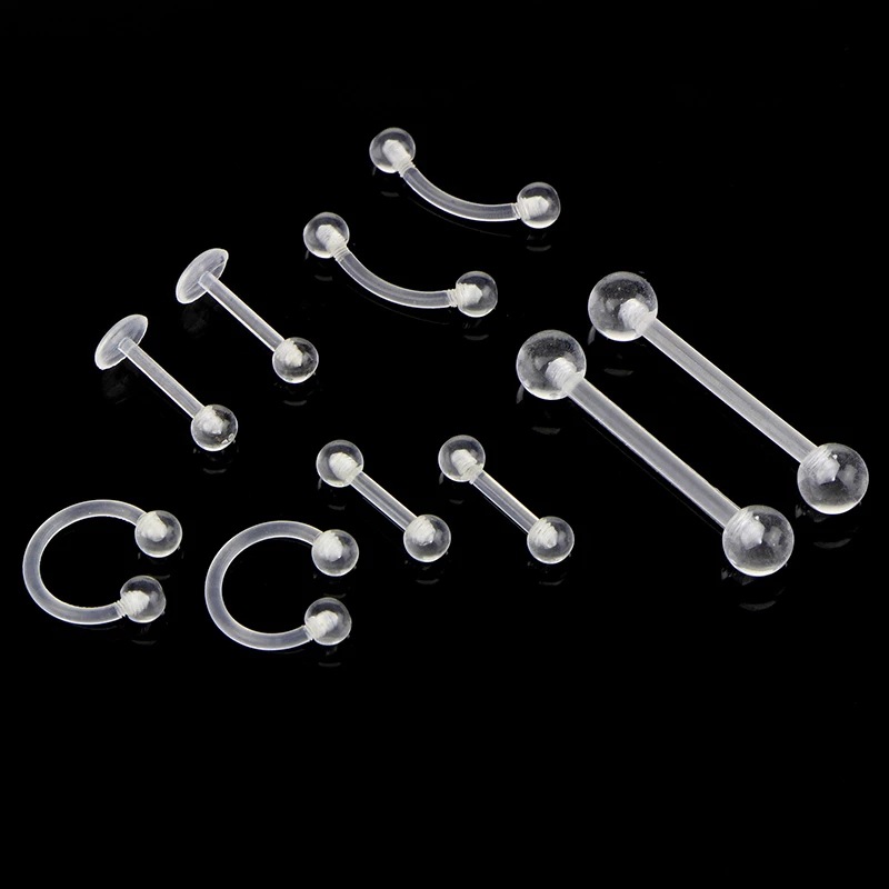 Cross-border 10-piece acrylic transparent UV soft bar belly button eyebrow nail tongue barbell nose ring body piercing hot sale