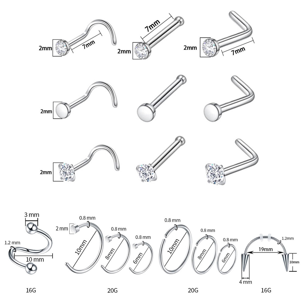 | nameOriginal | Cross-border 119-piece stainless steel puncture jewelry tongue nail nose ring horseshoe bar navel nail eyebrow nail needle set hot sale |
