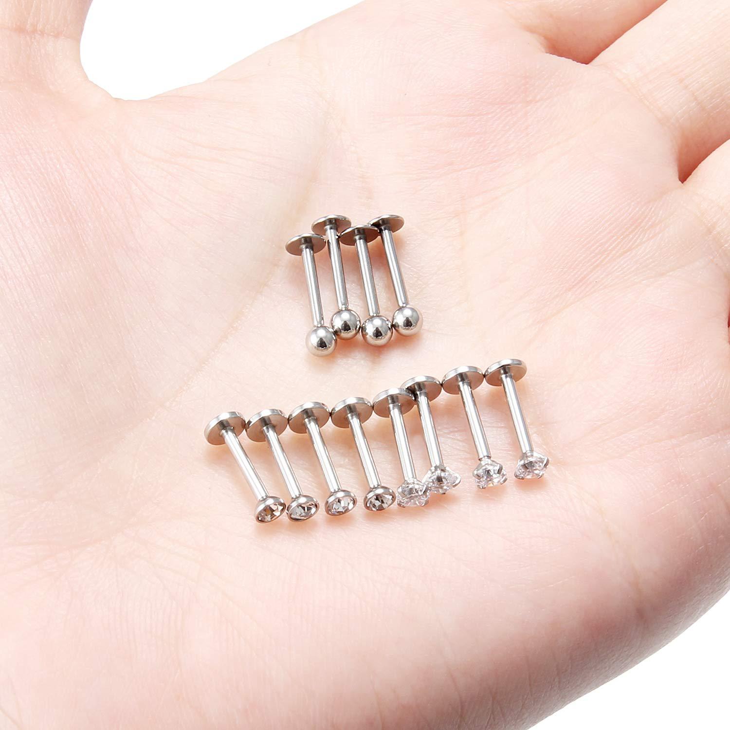 Cross-Border 12-piece set of lip studs stainless steel piercing jewelry silver set 16G diamond ball lip ornaments Amazon