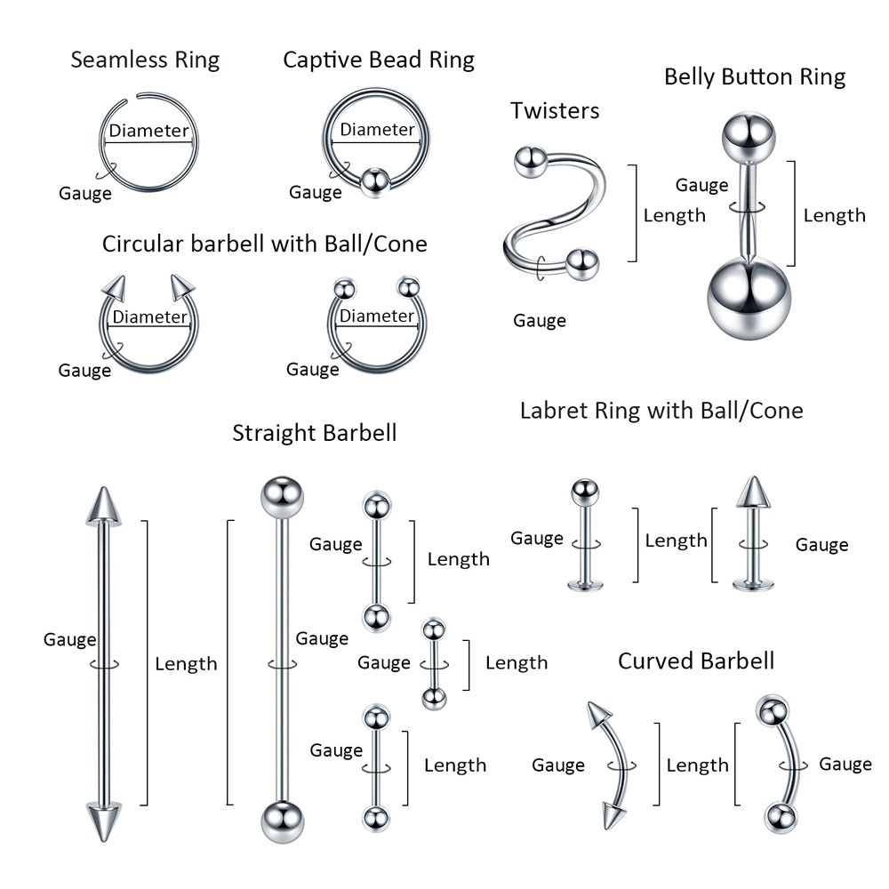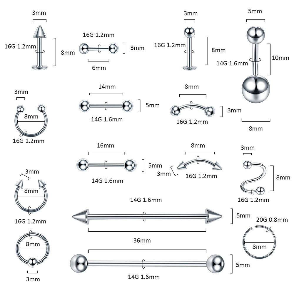 | nameOriginal | Cross-border 150-piece puncture jewelry nose ring navel nail eyebrow nail lip nail tongue nail ear bone nail suit Amazon |