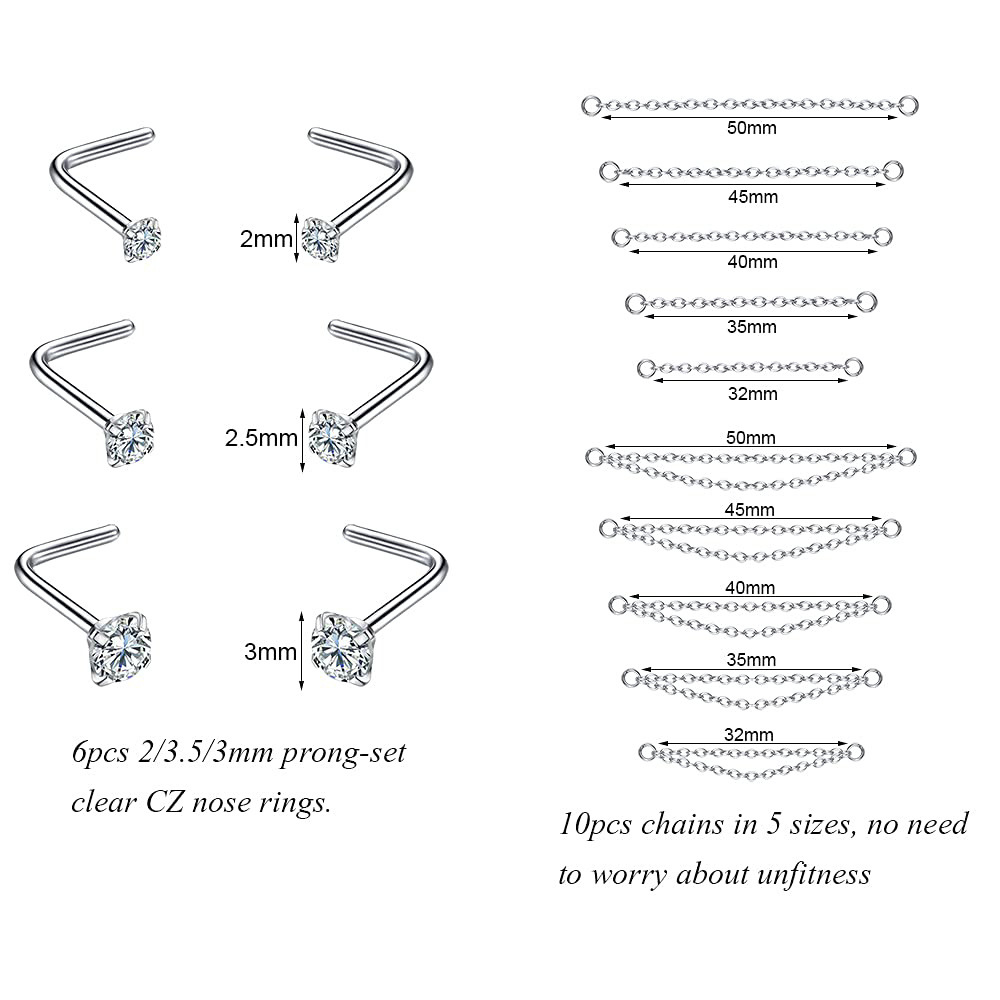 | nameOriginal | Cross-Border 16-piece set silver nose stud L Rod 2.0mm 2.5mm 3.0mm double chain single chain mm-50mm |