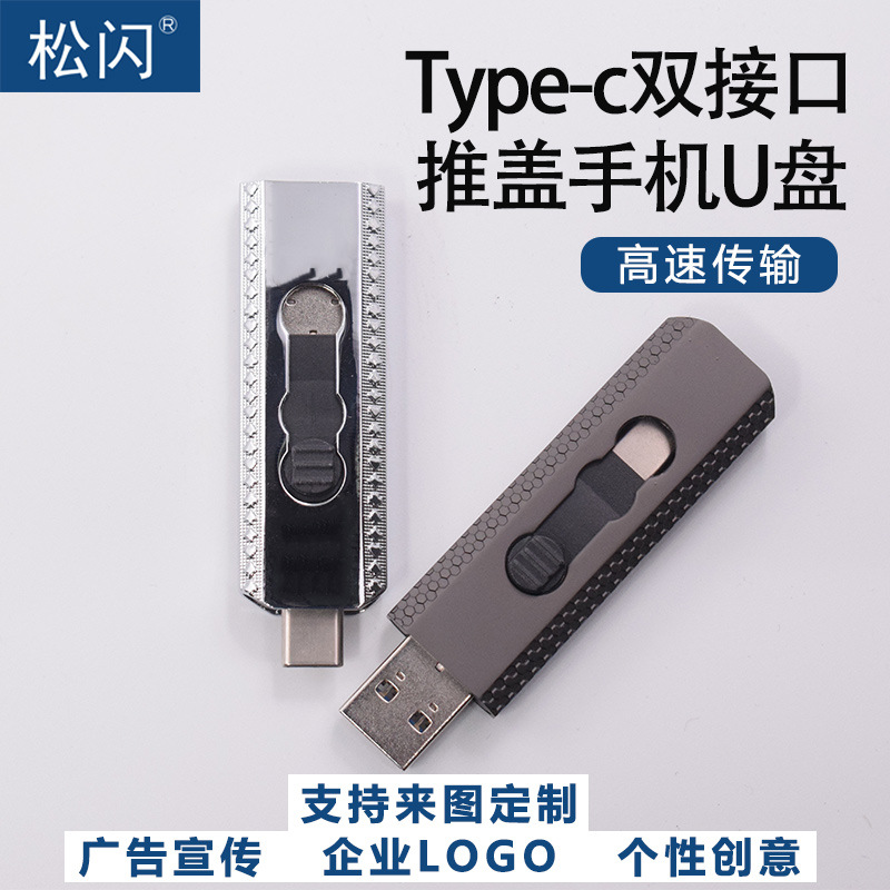 Cross-border 2-in -1 mobile phone Type-c metal push cover U disk large capacity 32G gift U disk 3.0 mobile phone U disk wholesale