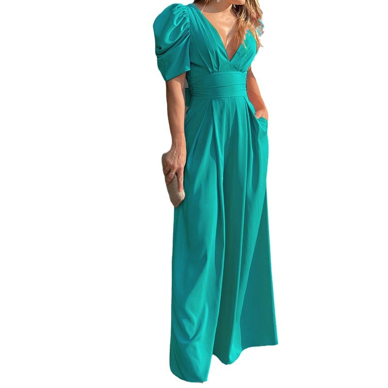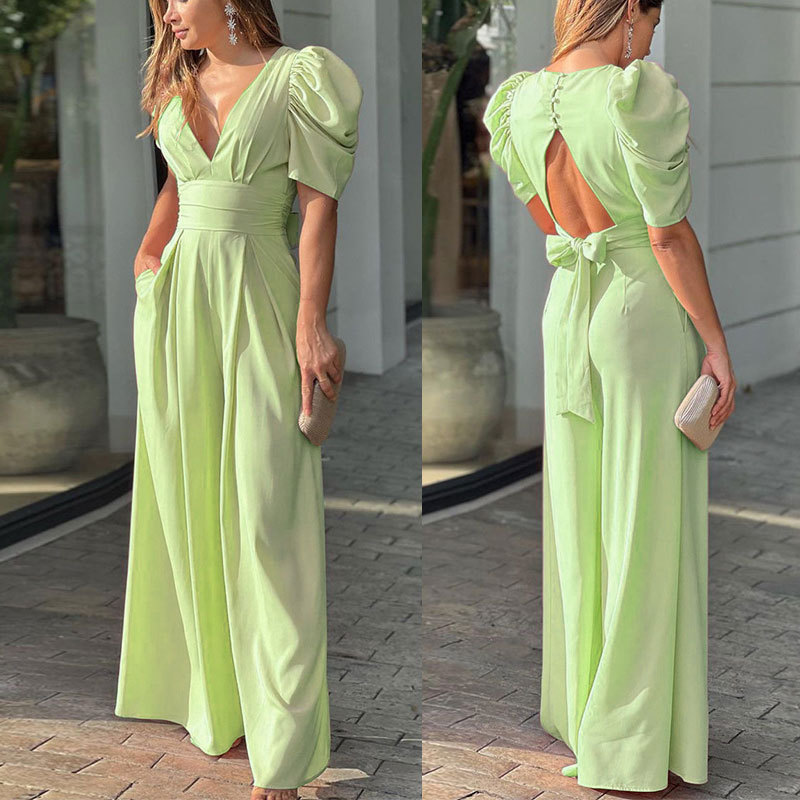 | nameOriginal | Cross-border 2023 Amazon Winter New European and American Women's Solid Color Elegant V-neck High Waist Wide Leg Jumpsuit |